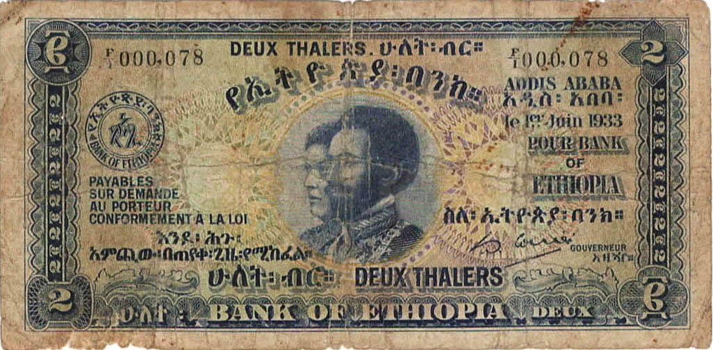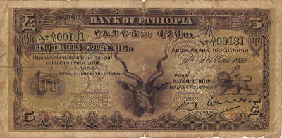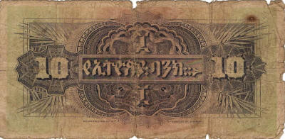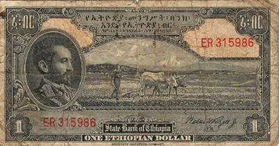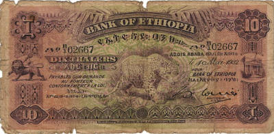 P.27a - 10 Dollars - ND (1966). National bank of Adisabeba at left.