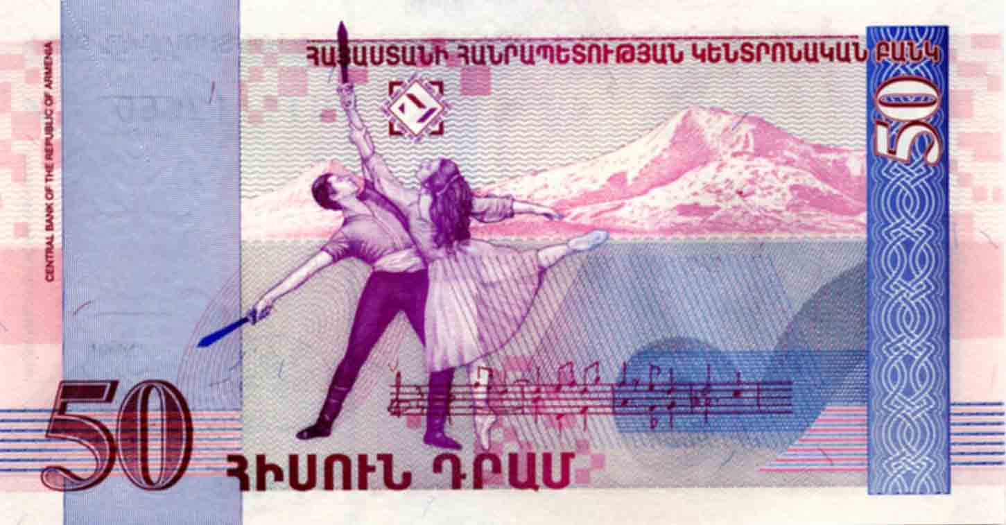 P.41 - 50 Dram - 1998. Sabre Dance from Khachathurian's ballett "Gayaneh"; Mount Ararat.