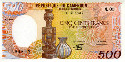 P.24a - 500 Francs - 1.1.1988. Carving and jug. Signature 12. Watermark: Carving.