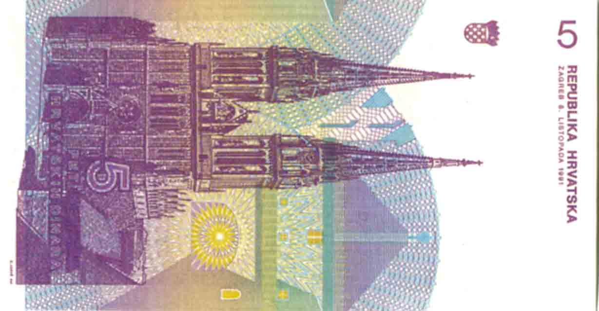 P.17a - 5 Dinara - 8.10.1991. Zagreb cathedral.