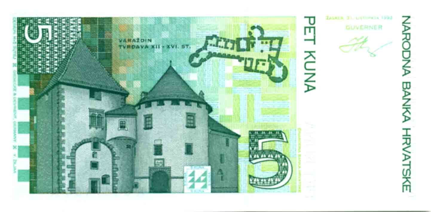 P.28a - 5 Kuna - 31.10.1993 (1994). Fortress in Varazdin.