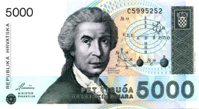 P.24a - 5.000 Dinara - 15.01.1992. R.Boskovic at center.