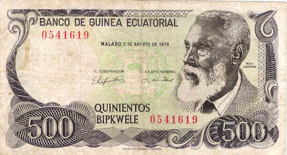 P.5 - 50 Ekuele - 7.7.1975. President M.N.Biyogo at right.