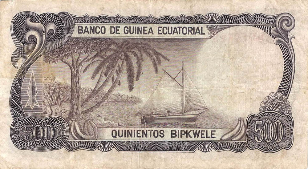 P.18 - 1000 Bipkwele on 100 Pesetas Guineanas - 21.10.1980. Banana Tree at left.