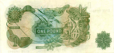 P.374a - 1 Pound ND (1960-61). Britannia seated with shield in circle at center.