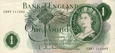 P.374e - 1 Pound ND (1966-70). Queen Elizabeth II at right. Signature J. S. Fforde.