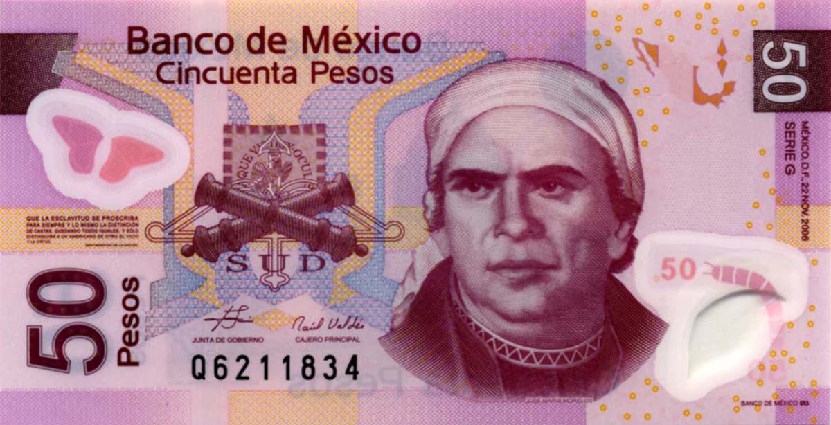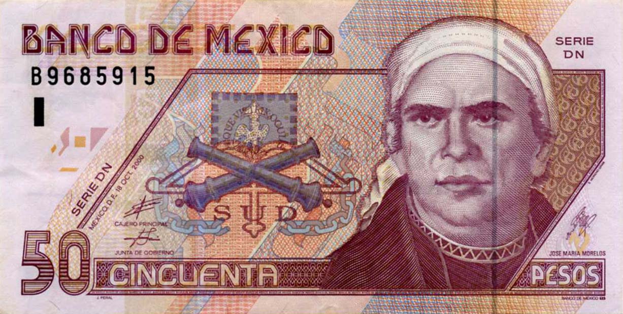 P.107d - 50 Pesos - 23.4.1999. J.M.Morelos at right.