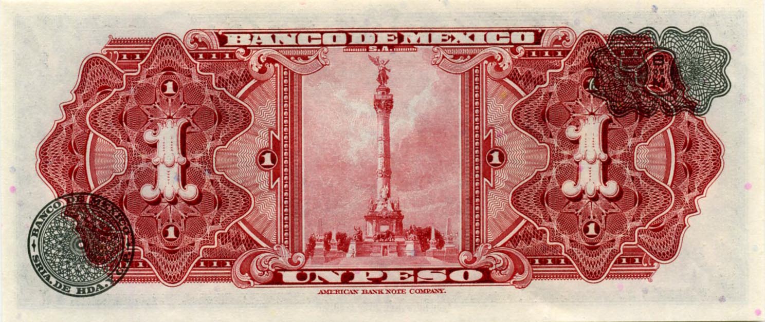 P.59j- 1 Peso - 10.5.1967. Statue of Victory in Mexico City.