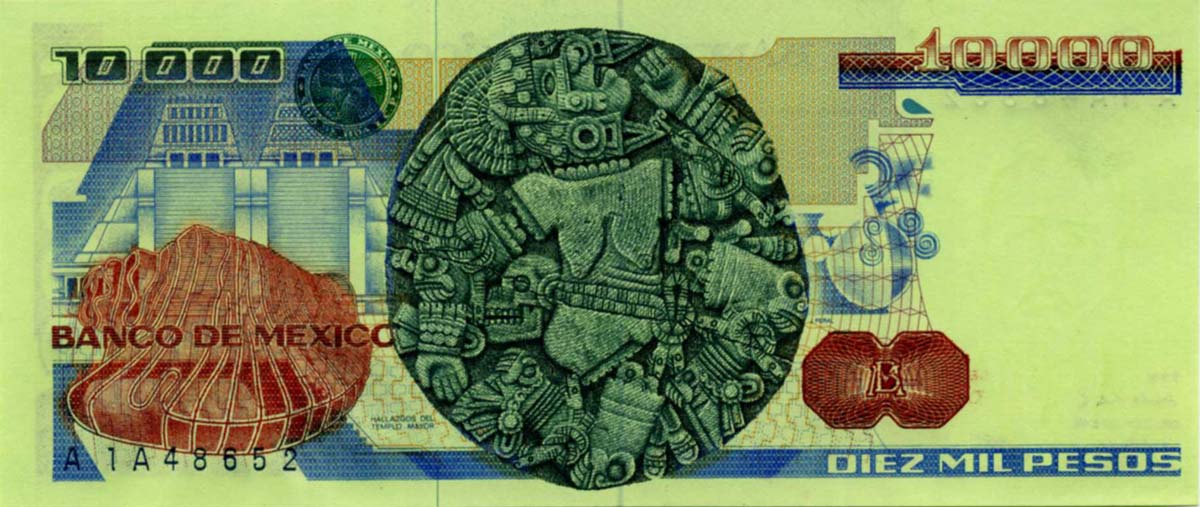 P.90d- 10,000 Pesos - 16.5.1991. Coyolxauhqui stone carving.
