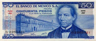 P.67a- 50 Pesos - 5.7.1978. B. Juárez at right. 3 signature varieties.