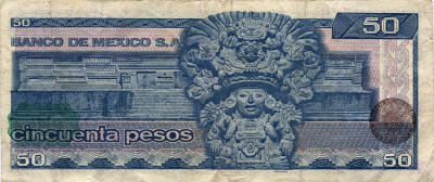 P.73- 50 Pesos - 27.1.1981. Temple and Aztec god.
