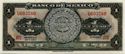 P.59j- 1 Peso - 10.5.1967. Aztec calendar.