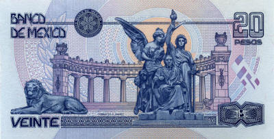 P.116b - 20 Pesos - 17.5.2001. Monument , statues Hemiciclo a Juárez.