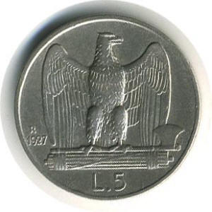 ITALIA - 5 lire 1927 - BB - Ag 835 - 5,00 g.
