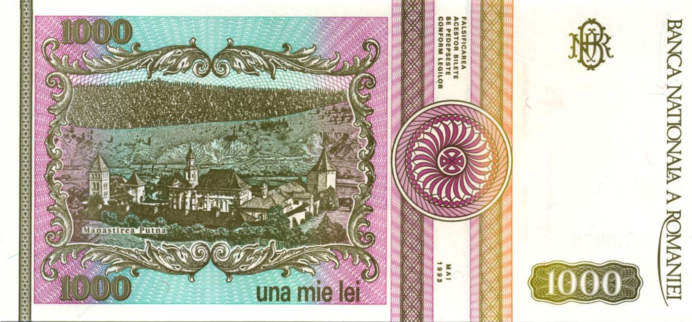 P.102 - 1000 Lei - 1993. Putna monastery.
