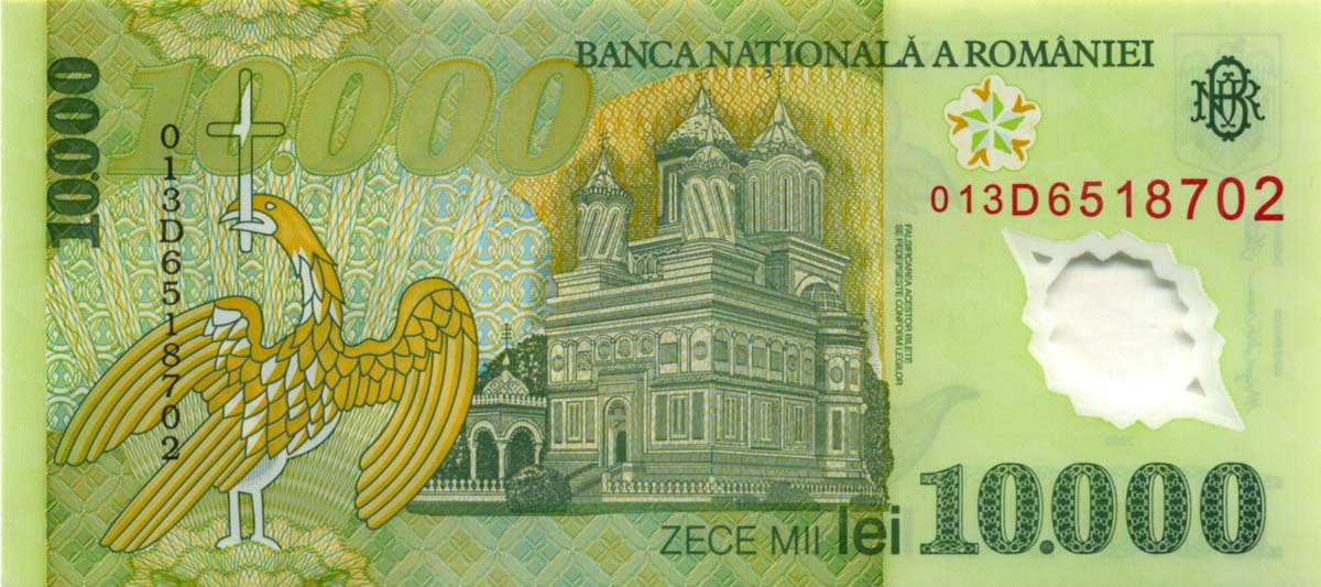 P.112a - 10,000 Lei - 2000. Church of Curtea de Arges monastery at center.