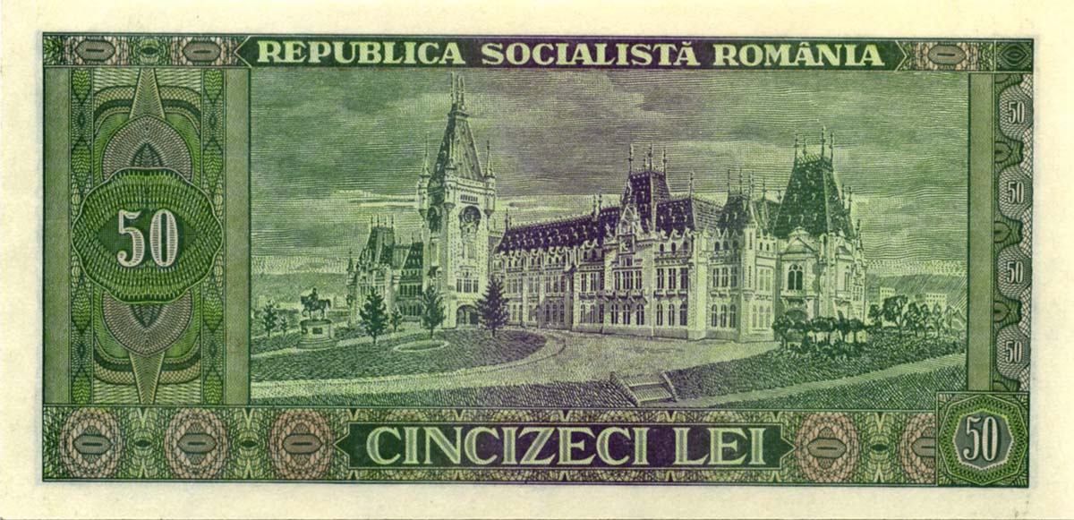 P.96a - 50 Lei - 1966. Culture Palace in lasi at center.