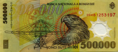 P.115a - 500,000 Lei - 2000. Eagle and airplane.