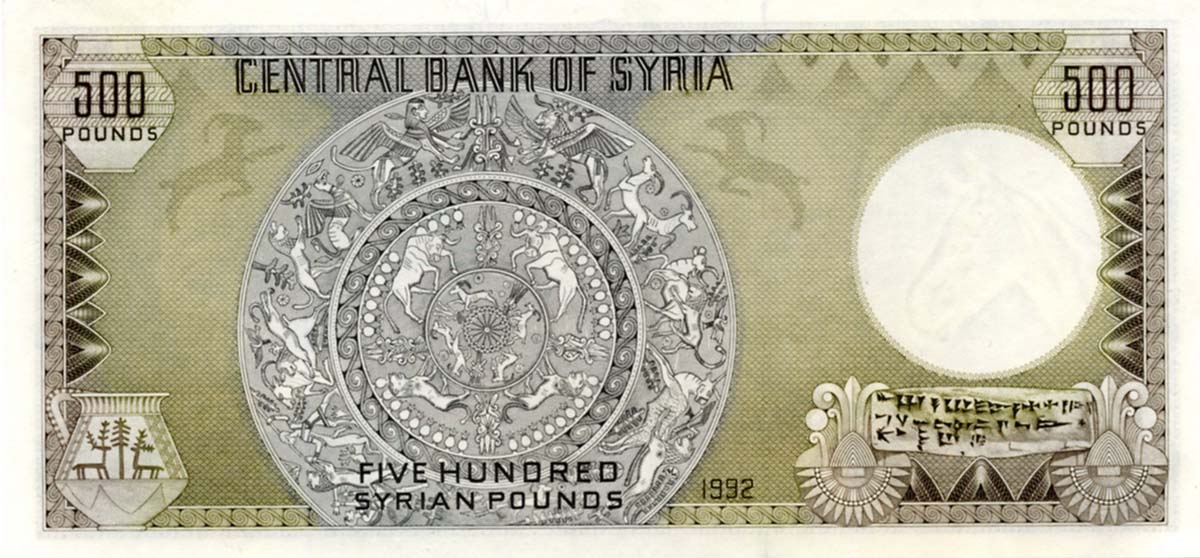 P.105f - 500 Pounds - 1992/AH1413. Motifs from ruins of Kingdom of Ugarit.