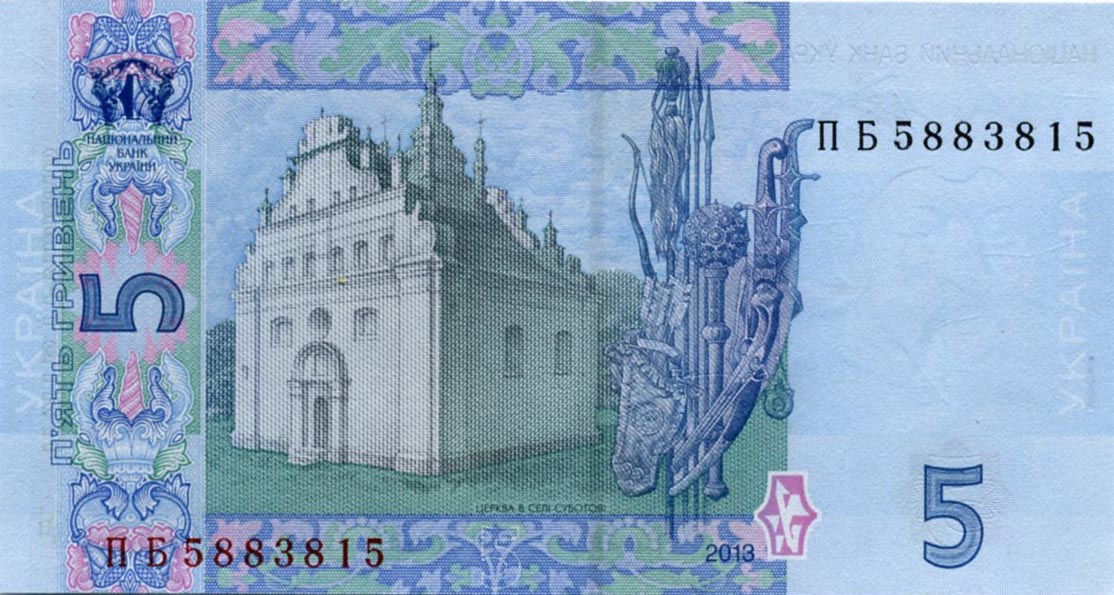 P.118d - 5 Hryven - 2013. Illinska Church in Subotiv at center.