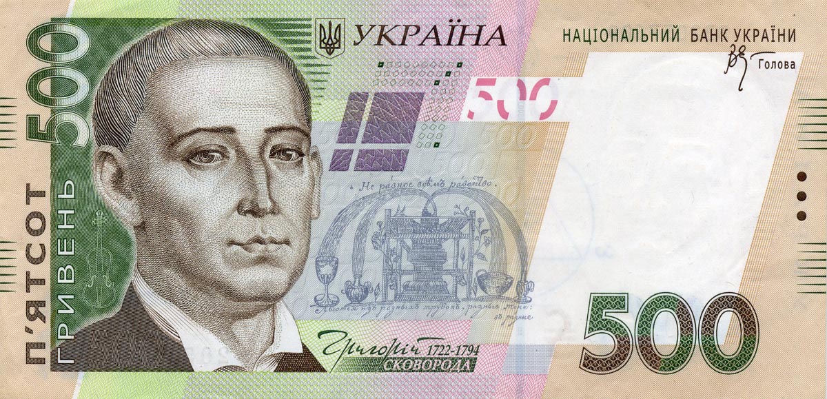 P.124a - 500 Hryven - 2006. Grigori Skovoroda at right. Watermark: Grigori Skovoroda. 154x75mm.