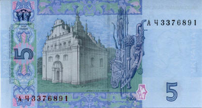 P.118c - 5 Hryven - 2011. Illinska Church in Subotiv at center. Scan received by Lino from Denmark.