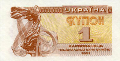 P.81a - 1 Karbovanets - 1991. Lybid , Viking sister of the founding brothers. Watermark: Paper. Printer: ISPB. 1KRB printed with fluorescent ink.
