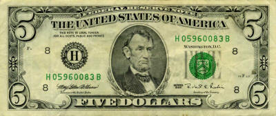 P.481b - 5 Dollars - 1988A. Abraham Lincoln at center.