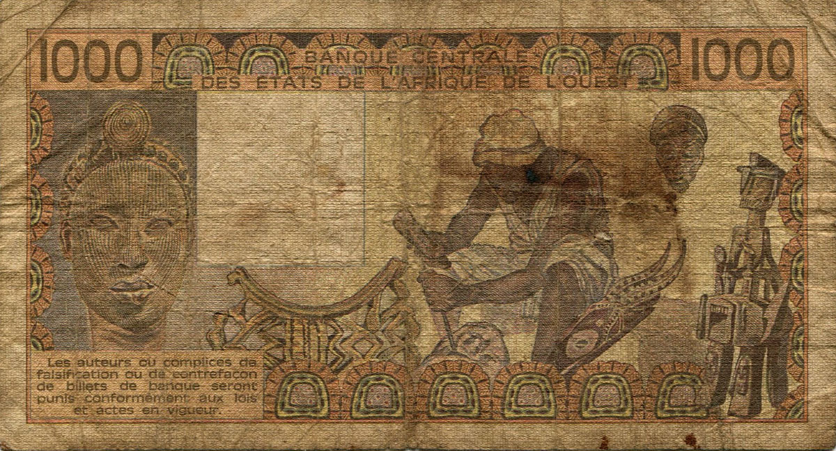P.115A- 1000 Francs - (20)19. Catfish shaped brass weight of the Ashanti people for weighing gold dust, symbols of education and health.