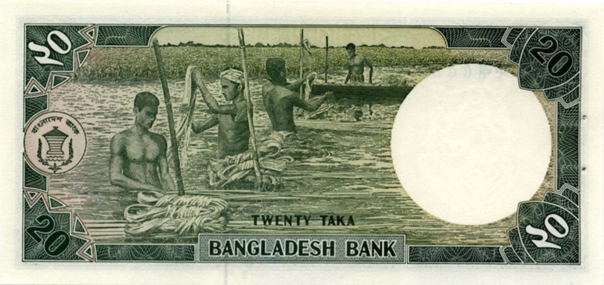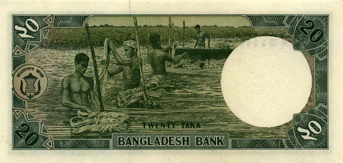 P.27b - 20 Taka - ND (1988)-2002. Rice harvesting scene at left center.
