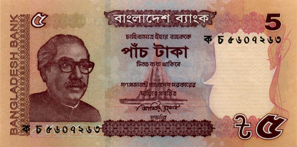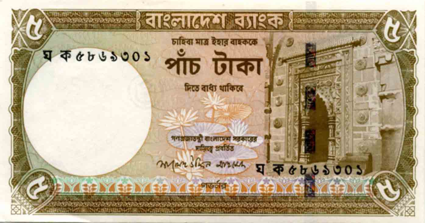 "Peoples Republic 5 Taka" Issue. P.64-P.64A.