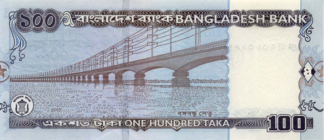 P.49g - 100 Taka - 2010. Bangabandhu bridge.