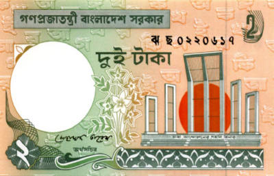 P.6C - 2 Taka - 2010. Monument at right.
