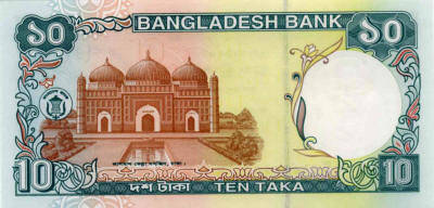 P.21a - 10 Taka - ND (1978). Atiya Jam-e mosque in Tangali at right.
