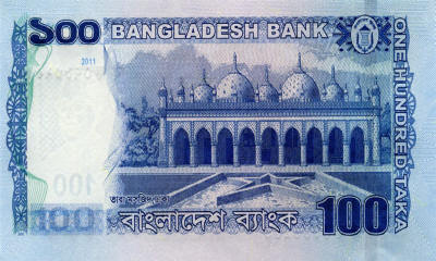 P.57b - 100 Taka - 2012. Star mosque in Dhaka at right.