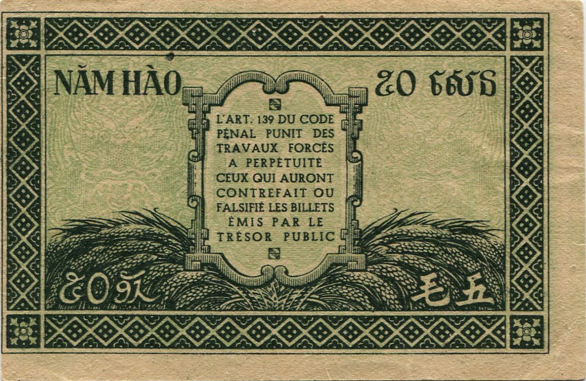 P.53a - 5 Piastres - ND (1932). Signature 11 , Emile Minost (Le President) , Jean Laurent (Le Directeur-general Adjoin).