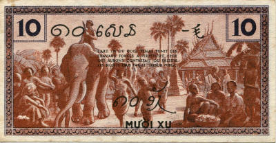 P.54c - 1 Piastre - ND (1932). Man. Like 52 but text in old Lao.