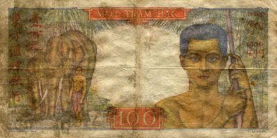 P.82 - 100 Piastres - ND (1947-54). Man with two elephants.