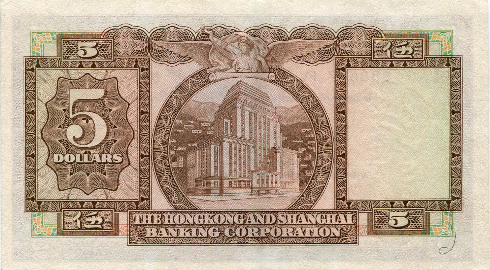 P.181f - 5 Dollars - 31.10.1973. Homg Kong & Shanghai Banking Corporation building.
