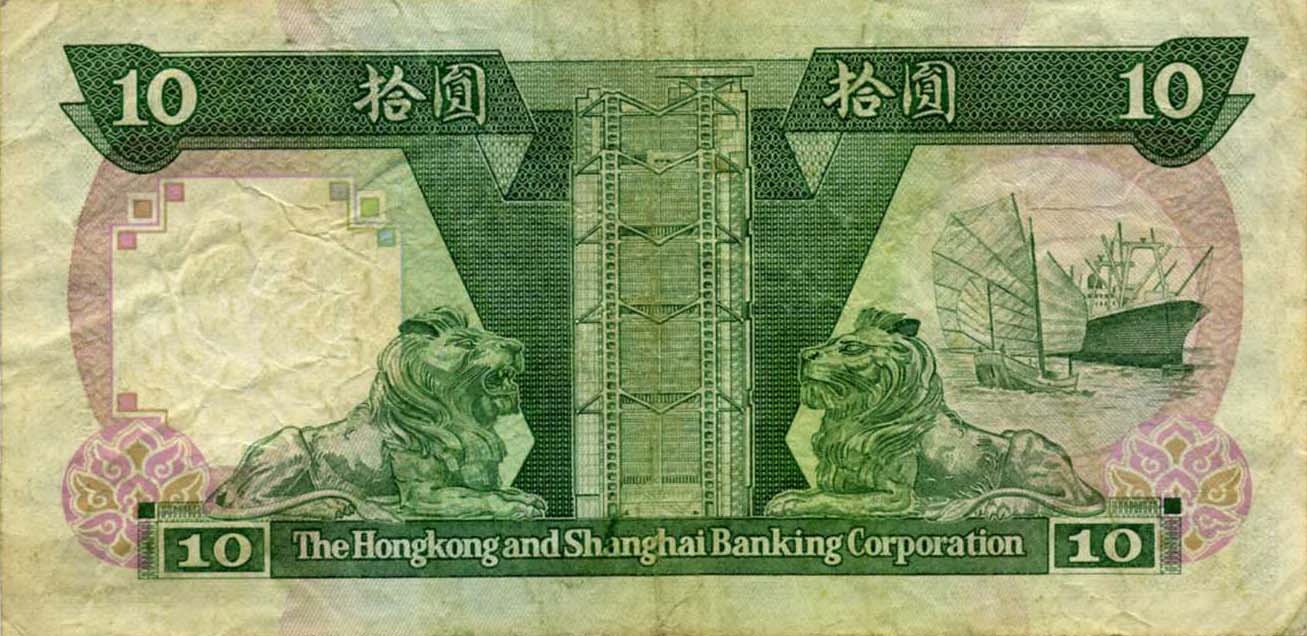 P.182j - 10 Dollars - 31.3.1983. Homg Kong & Shanghai Banking Corporation building.