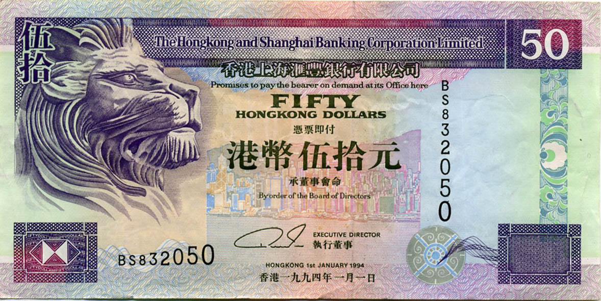 P.202a - 50 Dollars -1.01.1994. New bank building at center between facing lions.