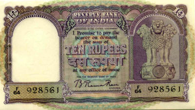 P.59 - 10 Rupees - ND. Asoka column at right.