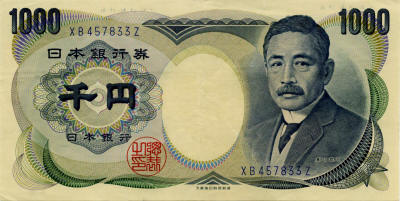 P.97b - 1000 Yen - ND (1984-93) . Soseki Natsume at right.