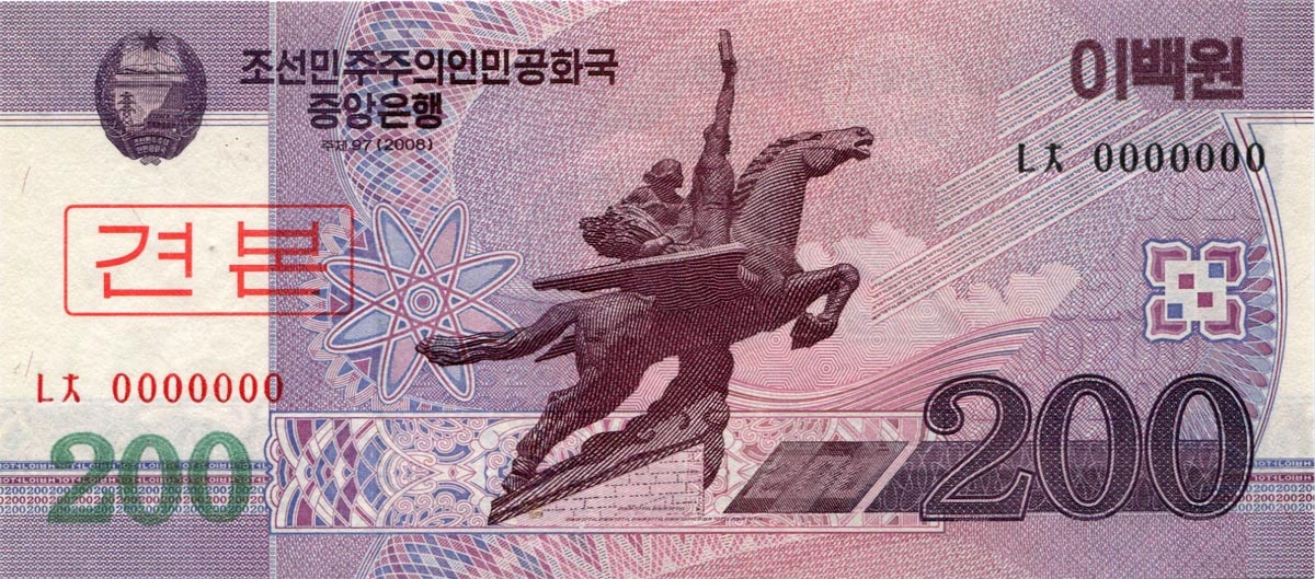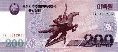 P.62 - 200 Won - 97-(2008). Winged equestrian statue "Chonllima". Scan received by Gionni980.