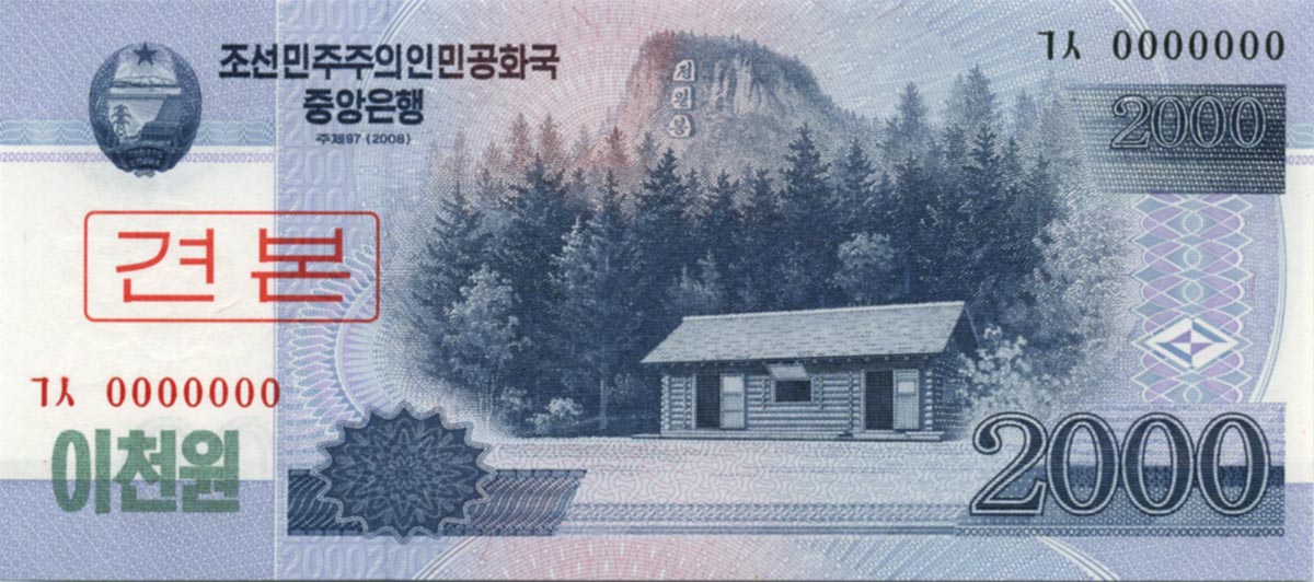 P.65s - 2000 Won - 2008. Wooden hut. Specimen.