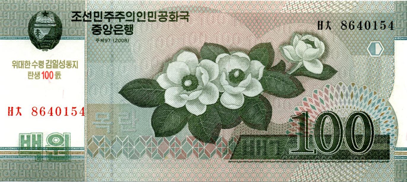P.61 - 100 Won - 2008 (2009). Flowers.