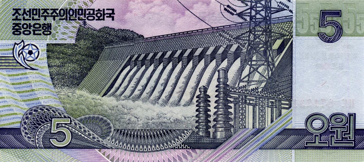 P.58s - 5 Won - 2002 (2009). Hydroelectric Dam.
