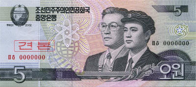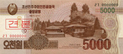 P.66s - 5000 Won - 2008 (2010). Kim II Sung at right. Specimen.