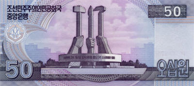 P.60 - 50 Won - 2002 (2009). Monument of the "Worker's Party of Korea"