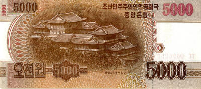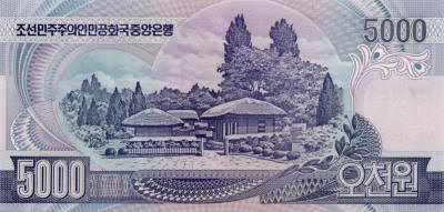 P.66s - 5000 Won - 2008 (2010). Mangyondae (Birthplace of Kim II Sung).